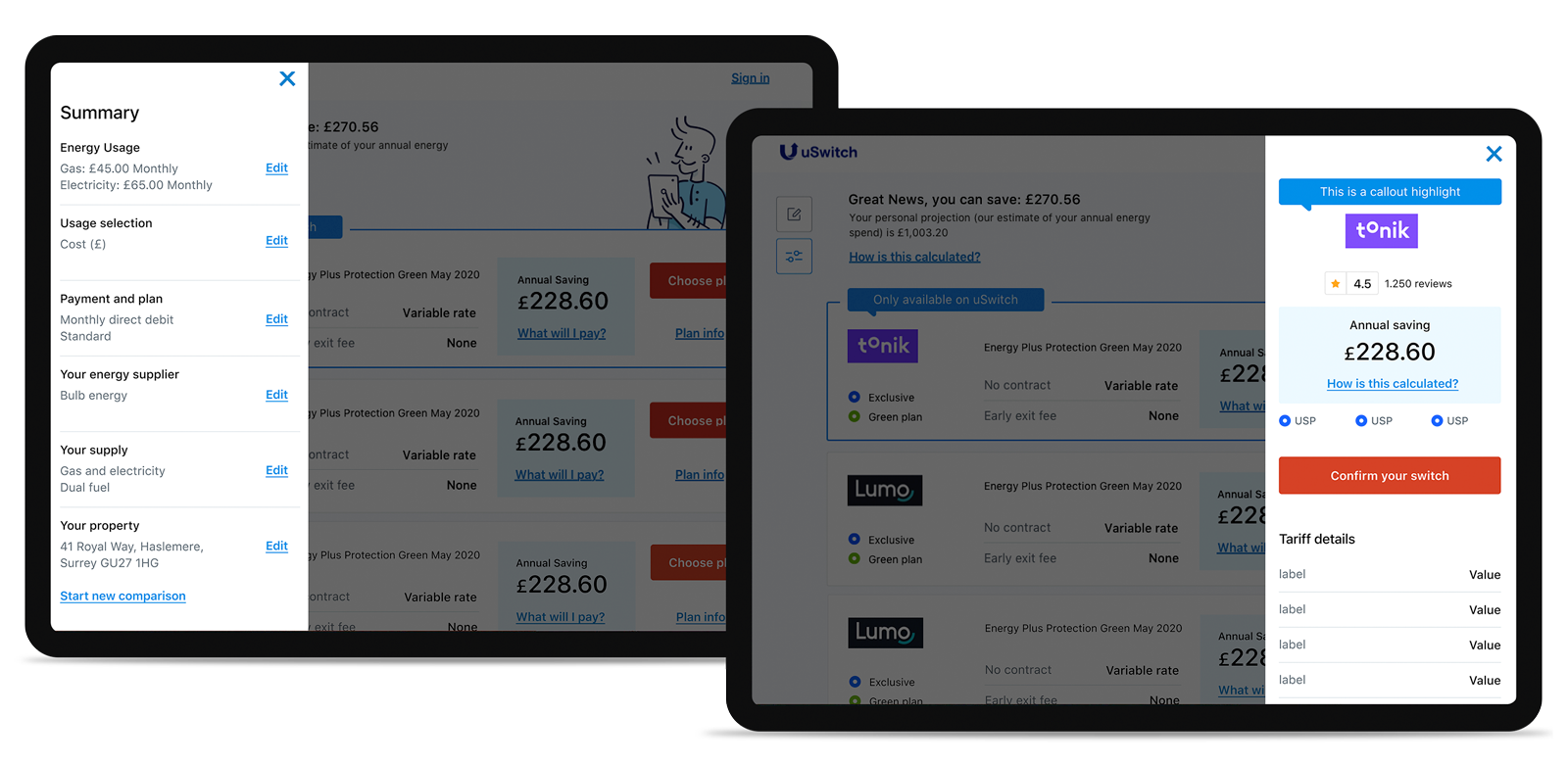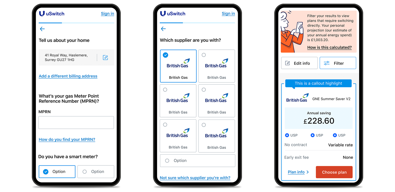 No changes were applied to the Energy homepage from a UX or back end point of view (see image above), however significant details were removed and some were added to the UI.