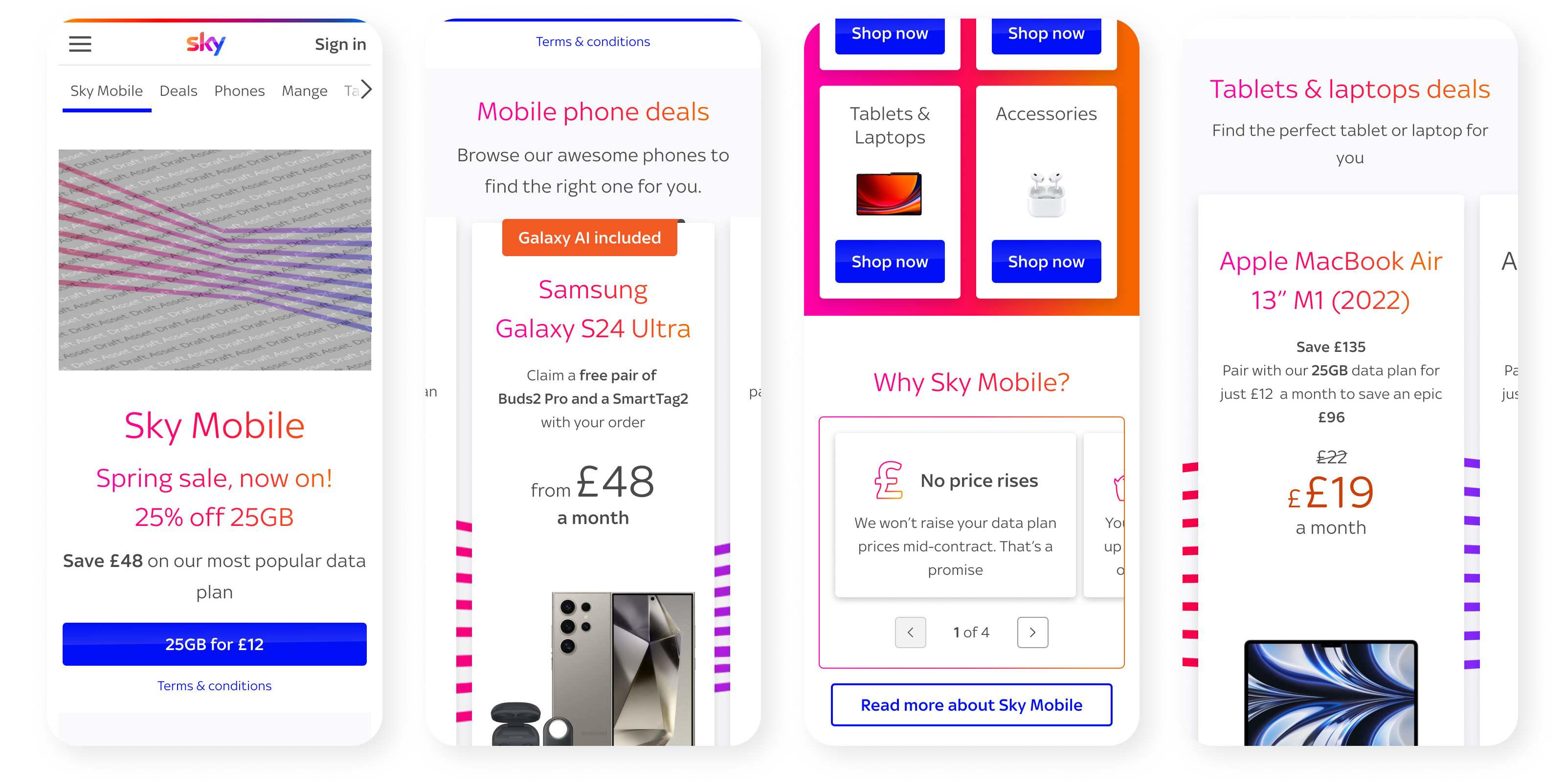 The homepage redesign created a clear entry point to build trust, improve discoverability of Sky Mobile’s offering and to give users a confident shopping experience.