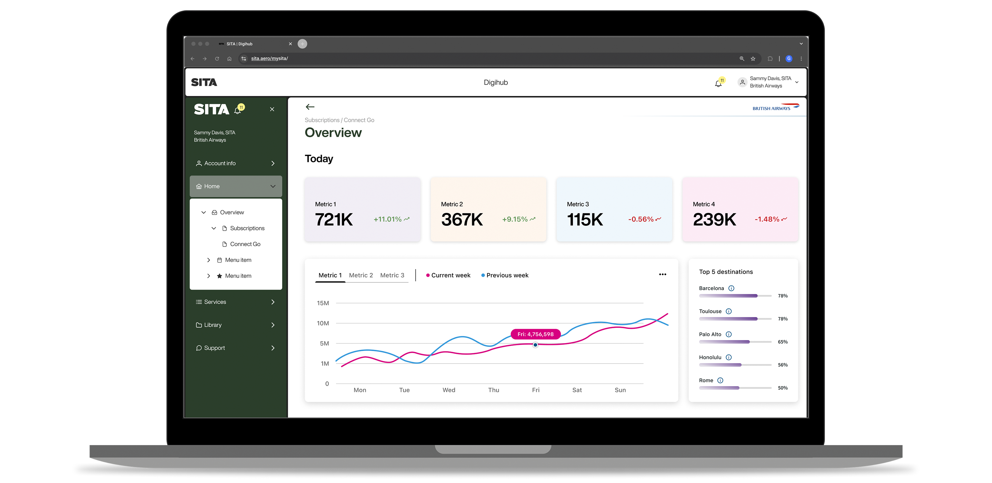 - The design needed to deliver clarity and simplicity for users, but also accommodate complexity behind the scenes. We built dashboards that allowed SITA’s partners to manage their accounts, access data and control their services, all from one place.