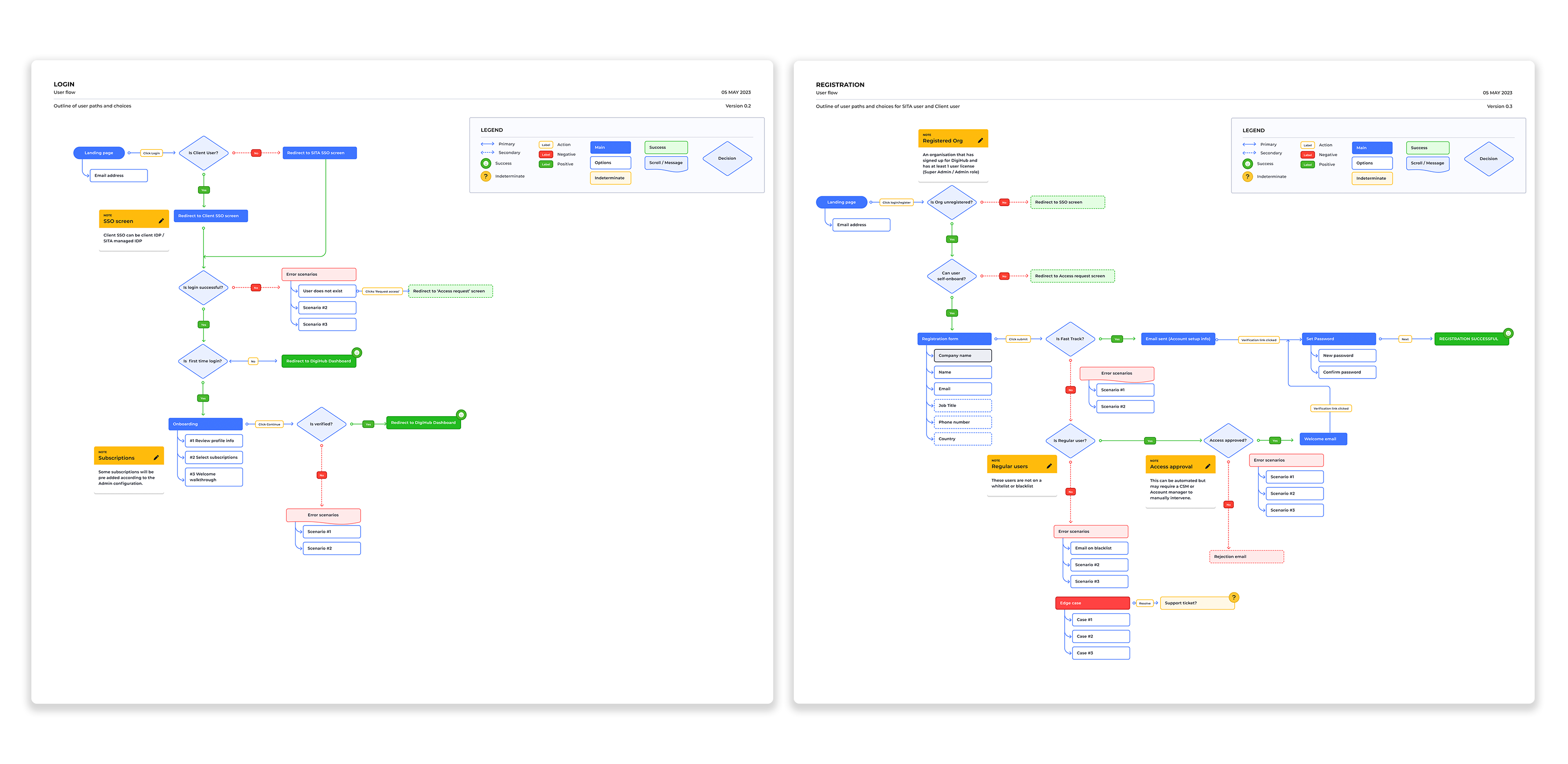 With the strategy agreed, I led the UX and UI design for the new portal. Working alongside Zensar’s engineering team, we mapped the core journeys, from authentication through to partner dashboards.