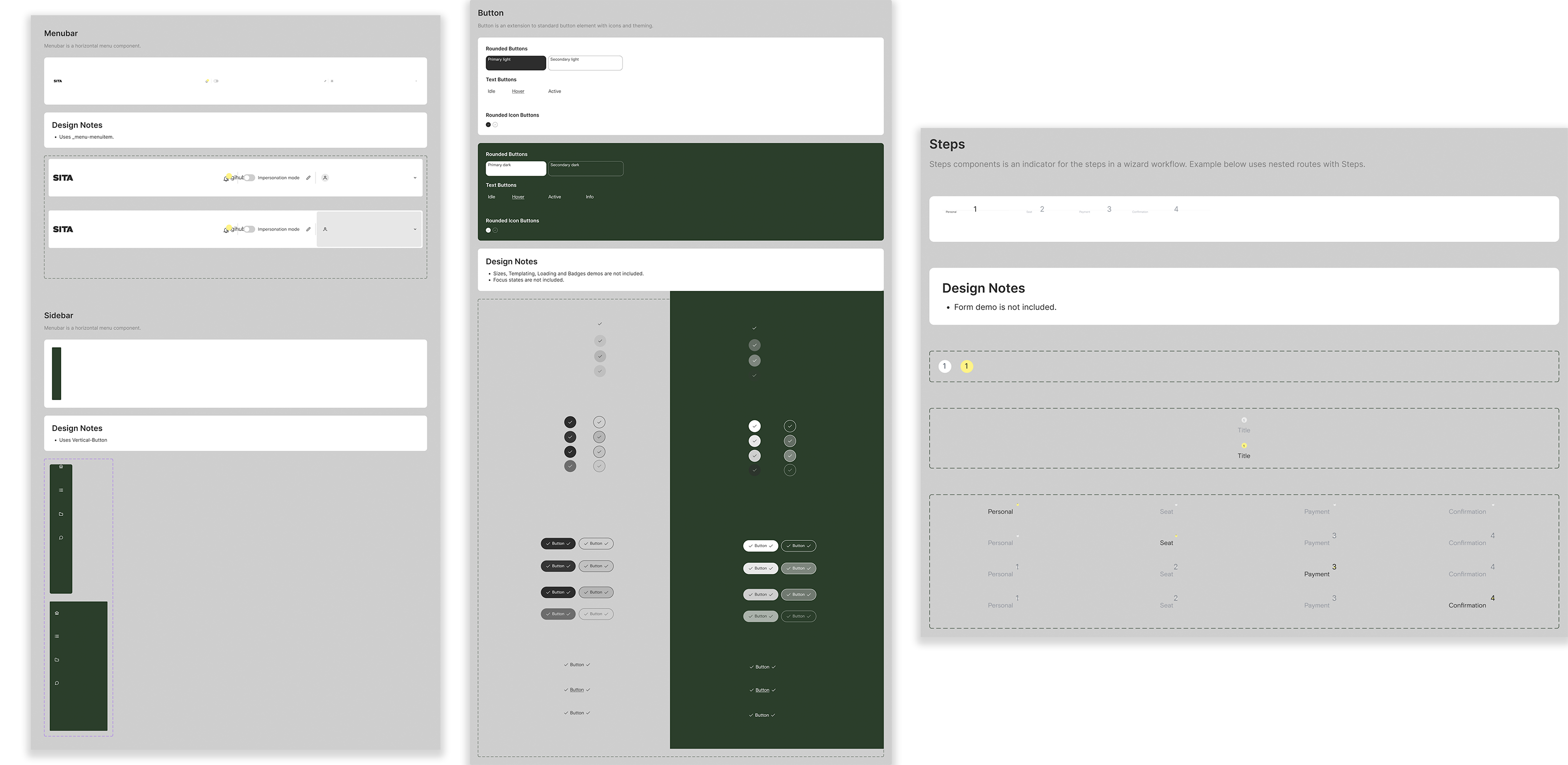 - Crucially, I created a design system that balanced consistency with creativity. The system provided rules and reusable components but left room for SITA’s in-house design team to adapt and extend the work. This flexibility meant the system could grow with the organisation rather than constrain it.
