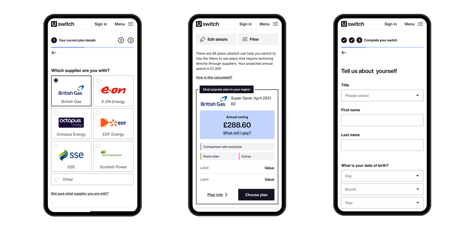 We had already spent a valuable amount of time in making the process mobile friendly — uSwitch (note the former spelling) mobile first — now it was the time to tie it in with our new brand's proposition.