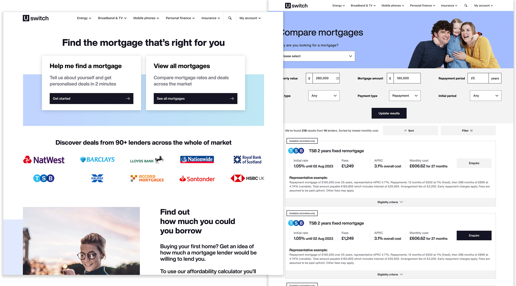 After several workshops and brainstorming sessions - led by me - we decided that it was necessary to surface more meaningful comparison results to our customers. The assumption was that if we were able to tailor our results table based on our customer’s needs, we would be able to interest them more effectively and generate more conversion. In order to do this we needed to ask our customers a few specific questions beforehand, hence the redesign of the Mortgages new homepage.