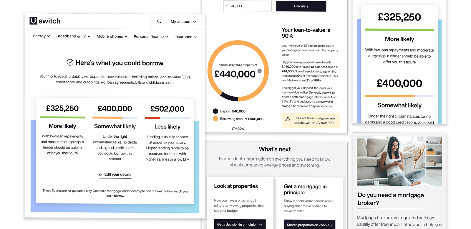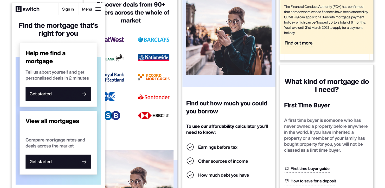 At the beginning we focused on one main journey: “Help me find a mortgage”. We also included two extra supporting journeys in order to exclude any dead ends and to keep customers interested: “View all mortgages” and an “Affordability calculator”.
