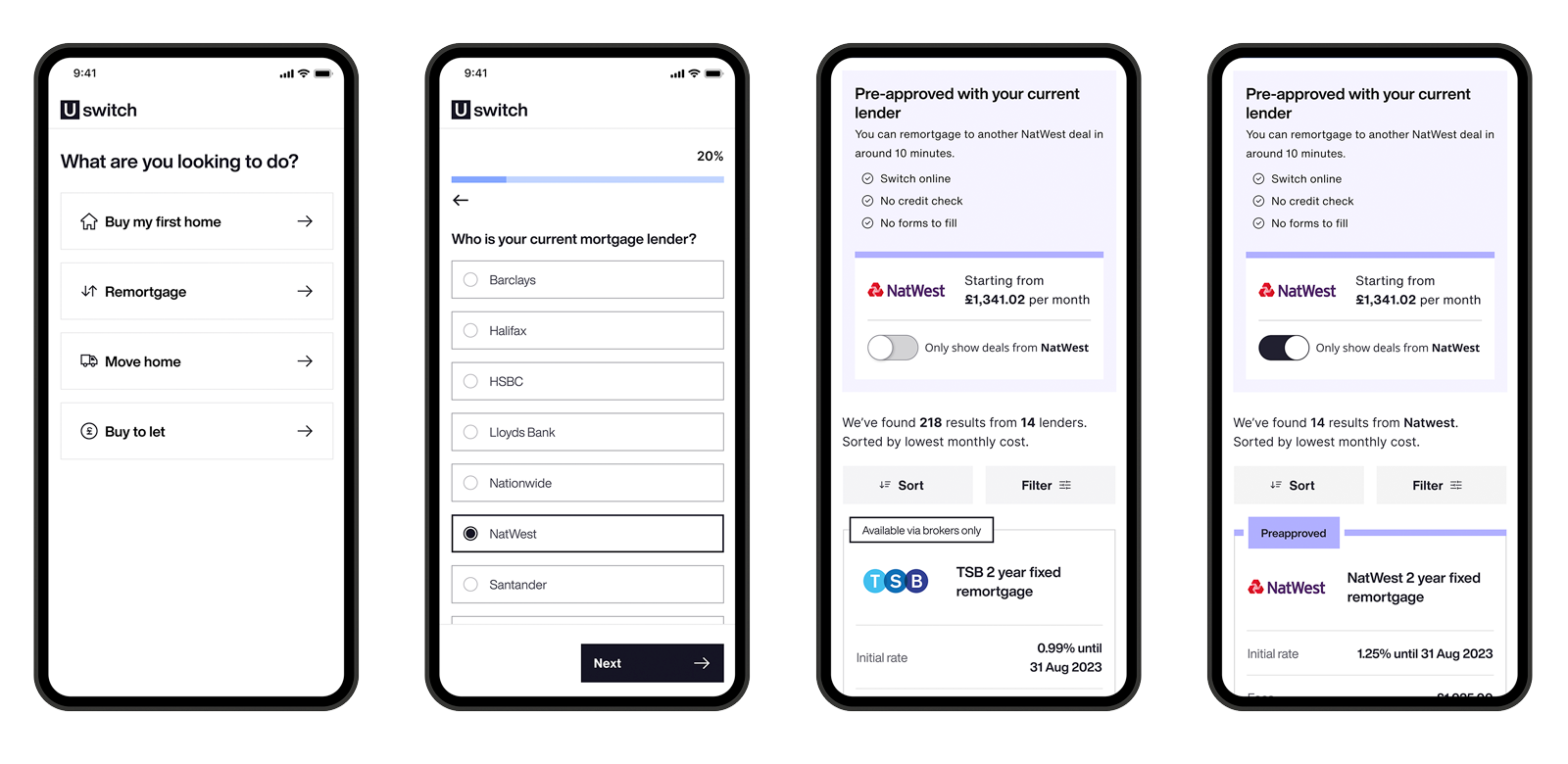 As mentioned already Uswitch had a partnership with Natwest, this meant that remortgage was the ideal starting point and the shortest journey to test. To apply one had to be a Natwest customer, no credit checks were required and no formal application was needed as Natwest already had all the necessary information.