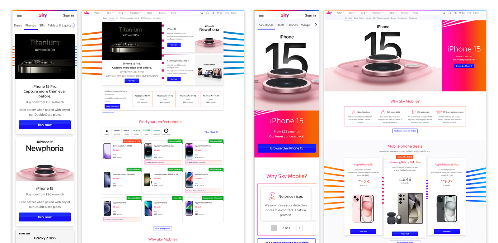 The homepage redesign created a clear entry point to build trust, improve discoverability of Sky Mobile’s offering and to give users a confident shopping experience.